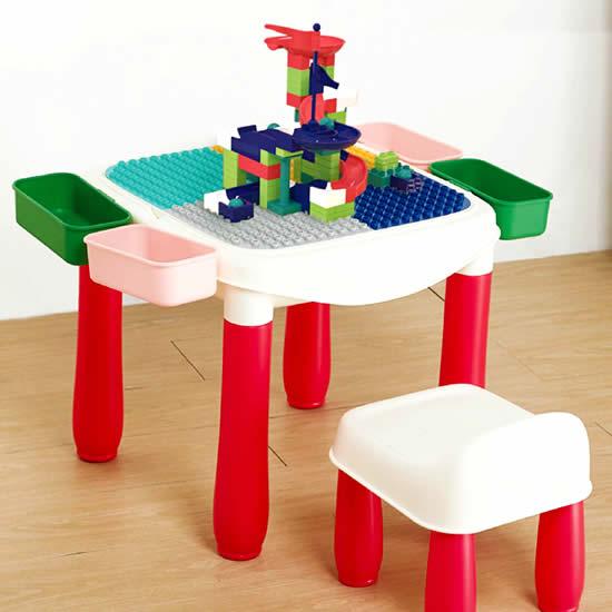 1翻轉積木桌+椅子,正面是積木玩具桌,翻過來就是遊戲+小書桌,113pcs兒童大積木,可與積木桌結合組裝玩耍,小朋友易上手,桌子內可直接收納積木與玩具、文具超方便,感官盆開放式設計,玩沙、玩水樂趣多。